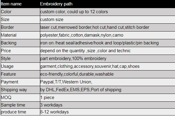 3.As your requested:We can provide other Embroidered Patches, Product pattern according to your requirements(word,flower,animal and so on).